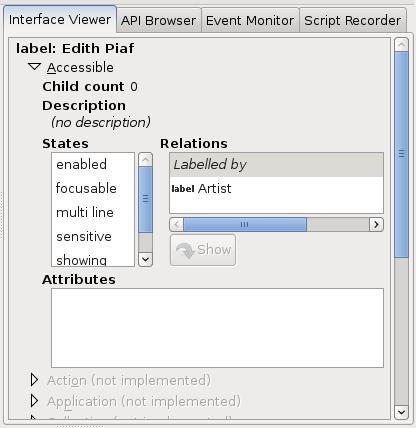 Finally, in the Accessible section in Accerciser's Interface Viewer plugin, we could verify that the defined relationships are coming down the wire and are provided to the assistive technology.