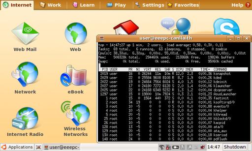 This limitation can be extremely frustrating if you want to make more drastic changes to your Eee PC's installed packages. Another option is to install a generic Linux distribution on the Eee. eeeXubuntu (wiki.eeeuser.com/ubuntu:eeexubuntu:home) is a version of the Xubuntu 7.10 distribution with Eee-specific drivers integrated and tweaks for low-resolution displays. It's an excellent choice if you want a more modern distribution on your Eee but would prefer not to compile the drivers from ASUS by hand.