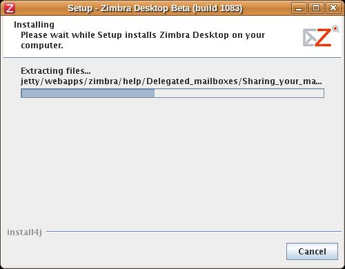 Unfortunately, because Zimbra Desktop acts like a traditional application, there is an installer. The installer itself is an approximately 40MB shell script. Actually, it is a 340-line shell script cat'ed to an approximately 40MB tar.gz file. The script extracts the tar.gz file from itself, gunzips and untars it, and then runs the Java-based installer that lives inside. This sort of installation bootstrapping, by extracting a file stored inside a shell script, is something commercial Linux software seems to prefer doing, and I have to say, it does work.