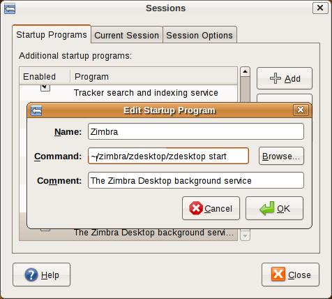 This dæmon lives at zimbra/zdesktop/zdesktop and must be launched with a single start argument. The installer does tell you about it, but it does not set it to start automatically, so in order to make sure it was always running when I was logged in, I created a Startup Program entry for it. This is a small annoyance, and one that hopefully will be automated in a future version of the installer.