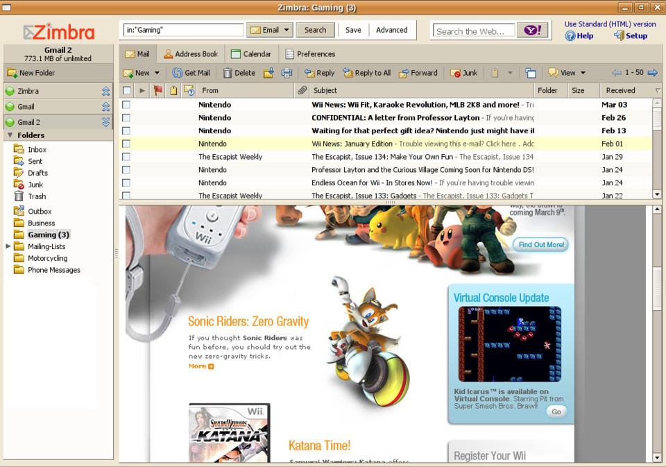 Figure 3. Zimbra Desktop has no trouble rendering HTML e-mail messages.