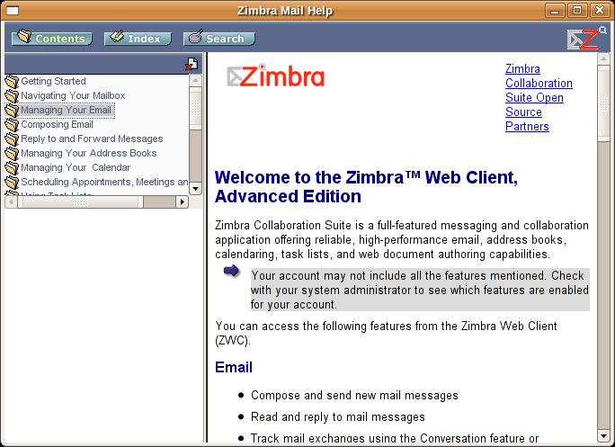On the whole, using Zimbra Desktop is quite plain. It feels like what I'm used to with standard “fat” desktop mail clients. The interface is easy to navigate around, and things are generally about where I expect them to be, and when I wanted more information, the integrated help system was very useful.
