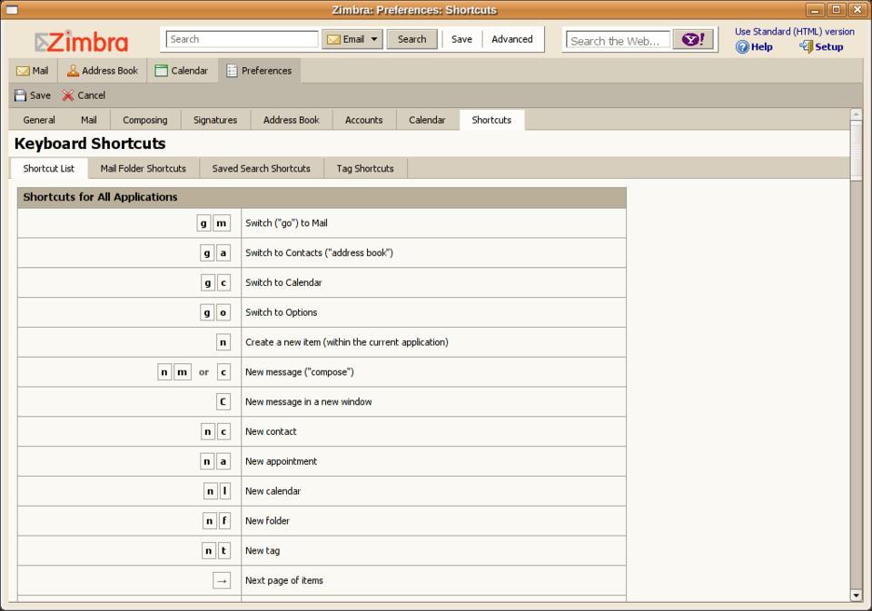 Figure 5. Zimbra Desktop has a lot of shortcuts.