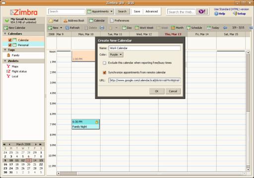 Figure 6. Zimbra Desktop can subscribe to remote ical calendars.