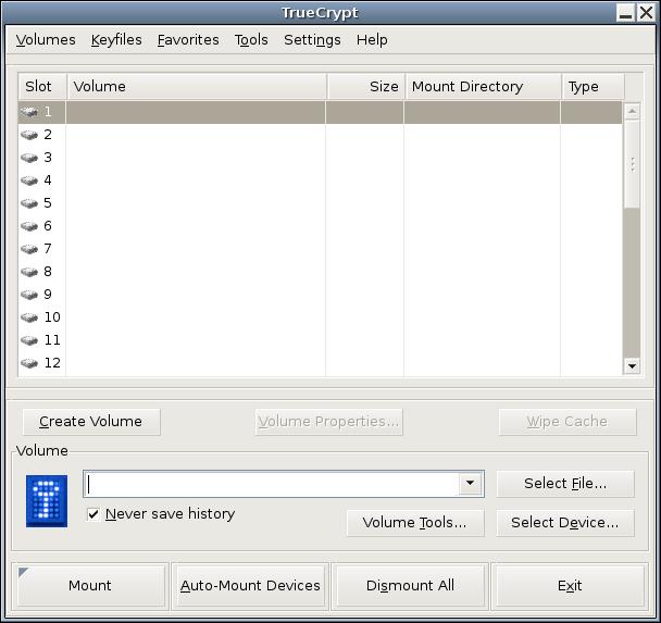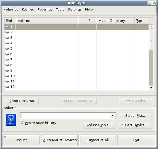 Figure 1. TrueCrypt 5.1 GUI for Linux