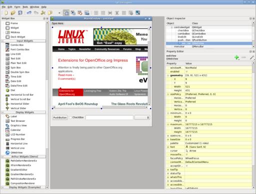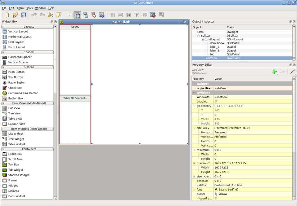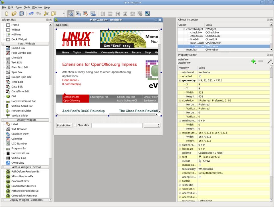 Figure 1. Designer lets you easily create forms with widgets, including WebKit.