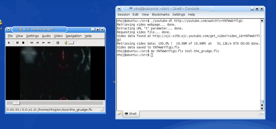 $ ./youtube-dl http://youtube.com/watch?v=tNTWwbYYlgU