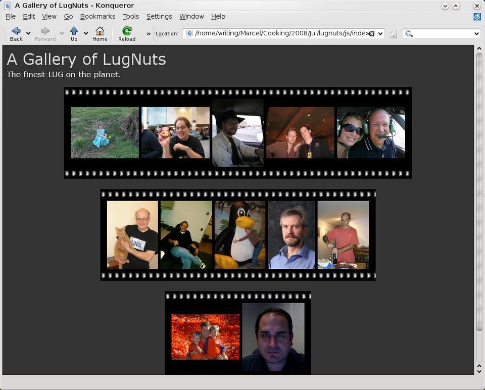Yes, François, I think it would be great to add a gallery of our regular guests on the restaurant's Web site, but I do have a couple concerns. First and foremost, I really don't think you should call it a “Rogue's Gallery”. Second, why on earth are you coding HTML by hand? That's going to take forever, and our guests will be here momentarily. Lucky for you, tonight's menu has some great free software for your Linux system that will make creating the gallery a breeze—later, though. I can see our guests arriving as we speak.