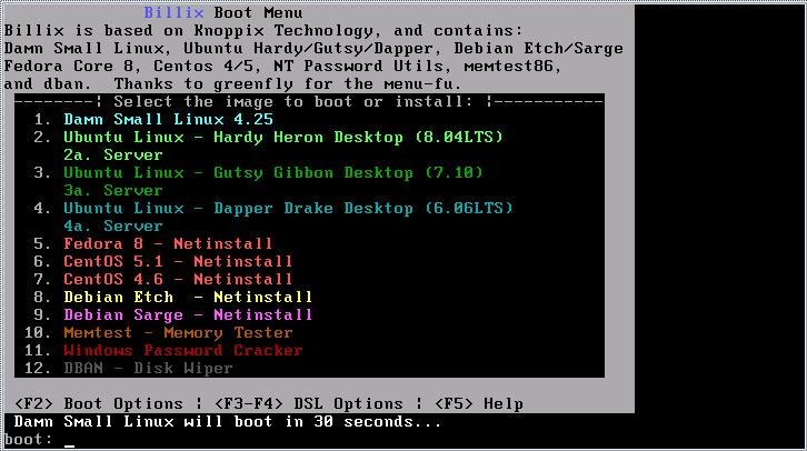 After reading through the DSL Web site, I discovered that it was possible to run DSL off of a bootable USB key, and that old love for the Bootable Business Card was rekindled in a new way. It wasn't until I had a conversation with fellow sysadmin Kyle Rankin about the PXE boot environment he'd implemented, that I realized it might be possible to set up a USB key to do more than merely boot a recovery environment. Before long, I had added the CentOS and Ubuntu netinstalls to my little USB key. Not long after that, I was mentioning this in my favorite IRC channel, and one of the fellows in there suggested I put the code on SourceForge and call it Billix. I'd had a couple beers by then and thought it sounded like a great idea. In that instant, Billix was born.