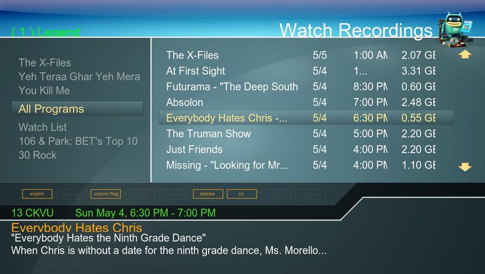 Figure 2. The Watch Recordings Screen of the MythTV Front End