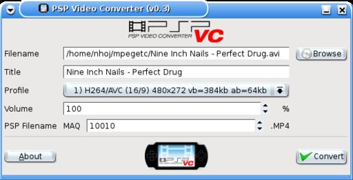 If you're lucky, the install script should configure and compile itself in one long go. If it gets stuck partway through, it probably needs a library, and it will let you know in an error message. Once the script is finished, a menu entry usually appears under Multimedia→PSPVC - Video Converter, or you can start it by entering pspvc at the command line.
