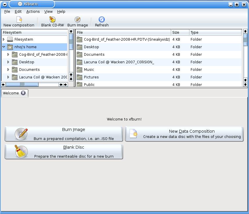 Finally, we have a CD-burning application for fans of the Xfce desktop, or even for those wanting a nice but light application for slower machines. According to its Web site, “Xfburn is a simple CD/DVD-burning tool based on libburnia libraries. It can blank CD-RWs, burn and create ISO images, as well as burn personal compositions of data to either CD or DVD. It is currently under heavy development.”