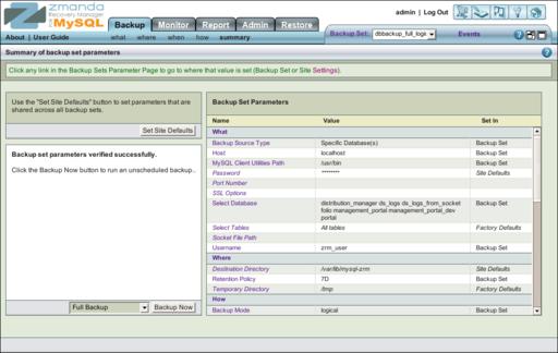 ZRM makes it easy to run a mix of full or incremental backups. Full backups include all data in a database, whereas incremental backups capture the changes since the last successful backup. Incremental backups require that binary logging is enabled on the MySQL server.