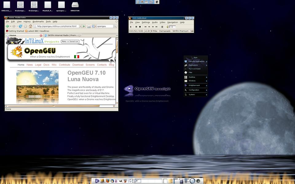OpenGEU is different enough to be noticed by family and friends. It's easy to use, simple to install and fanatically fun. You can expect E's total functionality with animations, fading and shadows. I used OpenGEU for quite some time for the purpose of this review, and it is the most pleasant E experience I encountered. This is one distribution I'll definitely be watching, and it's the distribution from which I am writing this review. If you are looking for the ultimate E experience, try OpenGEU. You won't be disappointed.
