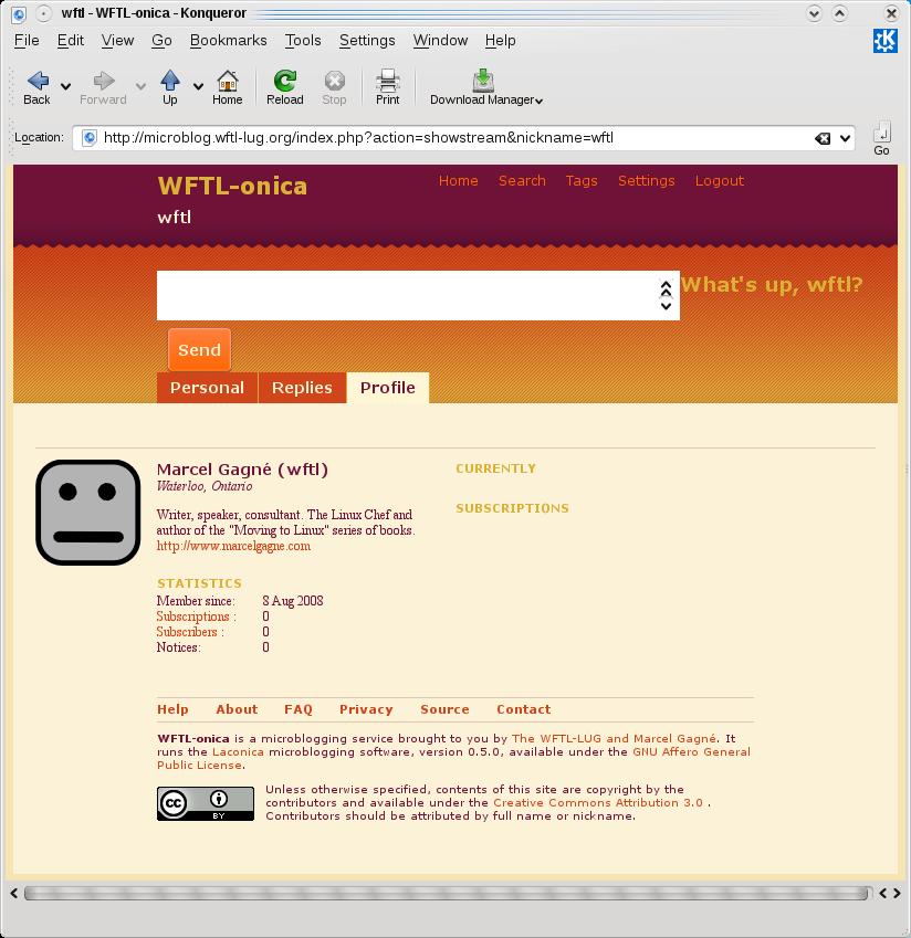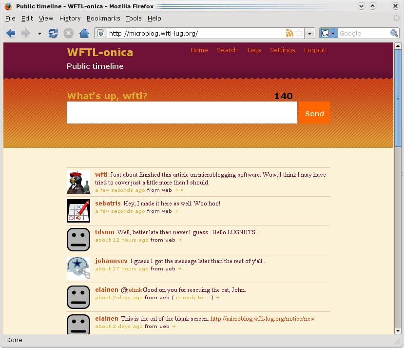 Figure 1. Laconica is an exciting entry into the world of microblogging software, and it looks to correct Twitter's limitations with an open design.
