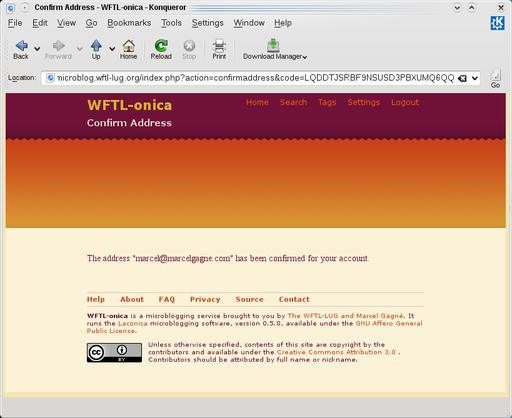 Once you have registered your new account, a message will be sent to your e-mail address. Once you receive this message, you'll find a link that will return you to your Laconica site and provide confirmation (Figure 3). This is done to make sure the person who signed up for the account is a real user and not a spambot.