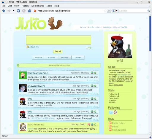 The next two packages aren't particularly well known, but each is as impressive as Laconica in its own way. Both are, however, much simpler to set up. Let's start with Jisko (Figure 7).