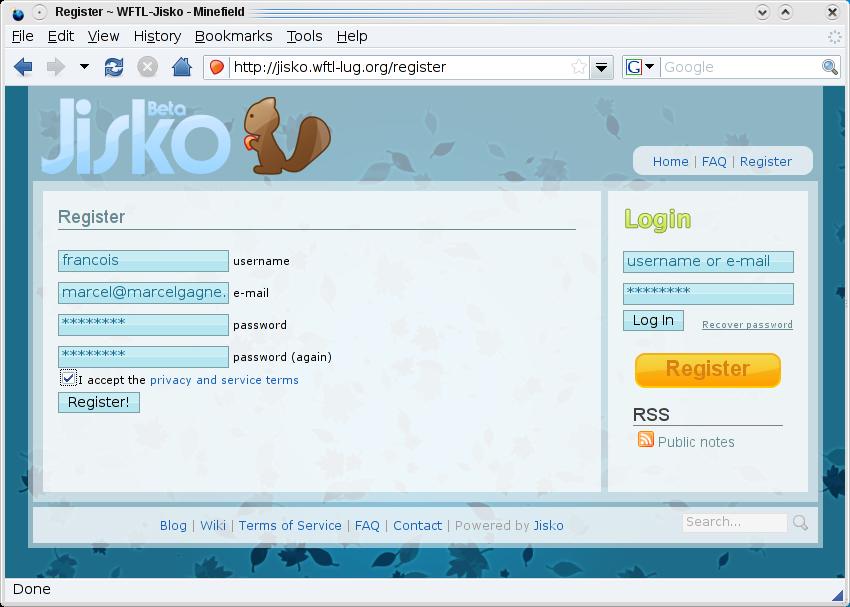 Your first order of business is to register an account. There are no admin accounts per se, so enter whatever nickname you want to use, along with your e-mail address and a password (Figure 8). Click Register to finish the process.