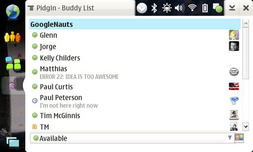 Another useful “hack” that's really easy is installing Linux applications that have been ported to the tablet. One of my favorite applications on the tablet is the popular IM application Pidgin, as shown in Figure 1. Although the Nokia tablets come with an XMPP-compliant Jabber client, I find that having a consistent UI and behavior from desktop to laptop to tablet is really nice. Getting Pidgin installed on the tablet is really easy, as it's in the official Nokia software repositories. Simply fire up the Application Manager from the Settings menu, search for Pidgin, and click install. The launcher for Pidgin will be in the Extras section of the menu.