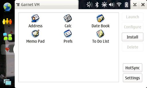 Another really interesting hack for the Nokia tablets is using them to emulate other computing environments. ACCESS (the owners of the Palm operating system) has released a free (as in beer) Virtual Machine (VM) for Nokia tablets that allows PalmOS applications to run on the tablet. To install the VM on your tablet, go to the link provided in the Resources section of this article, and register to download the VM. A link for downloading the VM will be sent to you via e-mail. Open that e-mail message on your tablet and click the link, and you'll be sent to a site where you can agree to the EULA and download the binaries. Make sure to open the package in the Application Manager, and it will install automatically after you click OK in a couple dialogs.