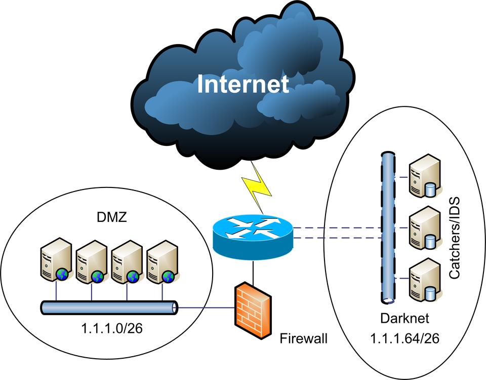 Knowing this information, we can create a Darknet inside our network and place some traffic catchers or IDS systems there to analyze and gather all suspicious data.
