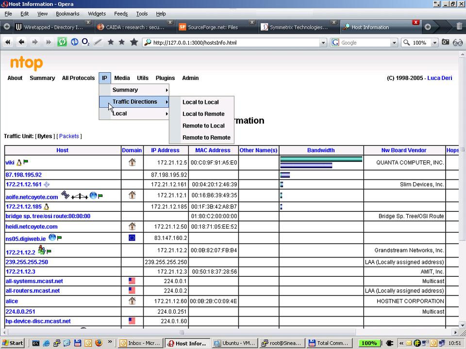 Figure 5 shows ntop's graphic interface and its ability to detect host operating systems, vendor and other details in Host view.