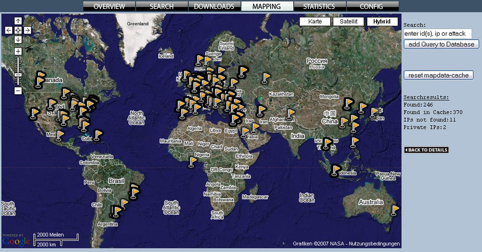 You easily can detect commands and SQL injections, cross-site scripting and map involved IPs to geographic locations, as shown in Figure 8.