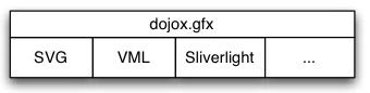 Internalizing Dojo's “write once, deploy anywhere” philosophy, Dojo's gfx (pronounced “g-f-x” or sometimes “graphics”) library packs a powerful 2-D drawing API that's capable of plugging in to an arbitrary renderer. Out of the box, it works with Canvas, Silverlight, SVG and VML, so regardless of which browser your application is ultimately viewed within, gfx has you covered.