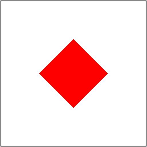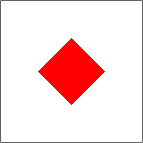 To illustrate the effect of successively applying transformation matrices, let's draw the very same diamond but rely on explicit translation to position it in the center of the surface before rotating it versus positioning it via the createRect function: