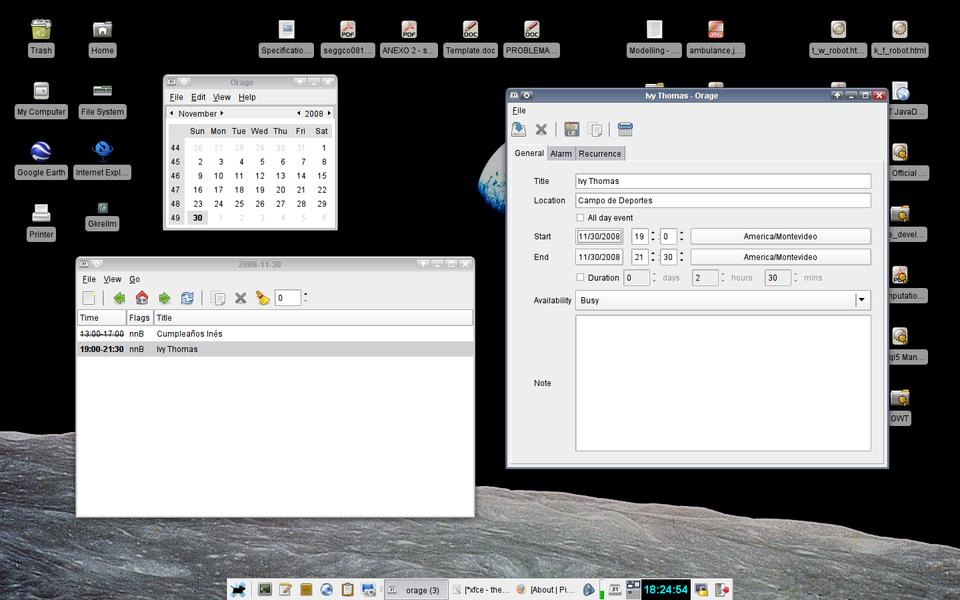 Figure 10. Orage provides clock and calendar functions with alarms and notifications.