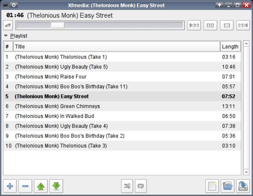 If you want to play music, Xfce includes Xfmedia (Figure 7). It provides basic playlist functions and is easy to configure. You can randomize the playlist, set diverse “repeat” options as well as provide “visualizations” to accompany the music (not fully developed yet). Xfmedia also is touted as a video player, because of its Xine usage.