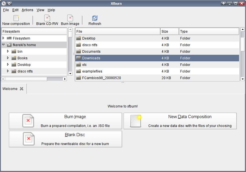 Figure 9. Xfburn provides CD and DVD burning, but it can't create audio CDs yet.