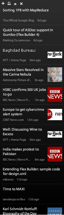 Figure 4. Snackr continuously scrolls your RSS feeds, so you can “snack” on them at your leisure.