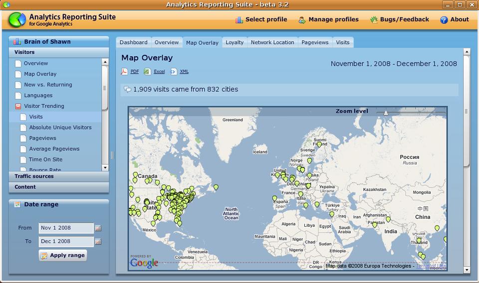 Google Analytics Reporting Suite—works under Linux AIR 1.1 Beta: yes.