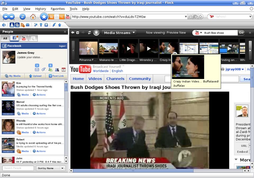 Figure 3. The Flock browser seeks efficiency via tight integration with popular sites like YouTube and Facebook.