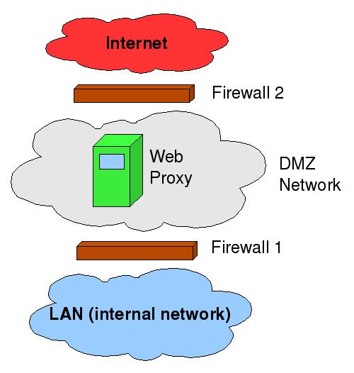 You may be wondering, why does the Web proxy need to reside in a DMZ? Technically, it doesn't. You could put it on your LAN and have essentially identical rules on Firewalls 1 and 2 that allow outbound Web transactions only if they originate from the proxy.