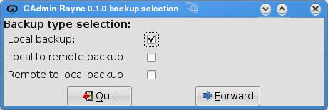 As you saw when we did this at the command line, rsync backups can be local, to a remote system or from a remote system. The next window looks for that very information (Figure 4). By default, local backup is checked. To back up to a remote server, select Local to remote backup. Because you can swap source and destination easily when using rsync, there's that third option. I routinely use a remote to local backup for my Web sites and remote systems. Click Forward to continue.