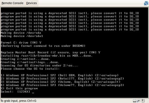 Unattended relies on the fact that the first step of the Windows 2000/XP installer is essentially a DOS program. What happens when a machine is PXE booted to an Unattended install is a little convoluted, but it allows for great flexibility. Basically, the machine boots to a Linux kernel and shell, where some scripts provided by Unattended step in. The script partitions the system's disk and creates a basic FAT filesystem, and then it walks you through some menus where you can make choices as to the OS type (if you've set up Unattended with different Microsoft OS flavors), installation options and optional software you may have packaged. You're asked all the questions for a particular installation up front, including the CD Key, User Name, workgroup or domain to join, and administrative users. The Unattended scripts automatically digest all of this and create an unattend.txt file, which is dropped on the newly created FAT filesystem. Then, a FreeDOS session is started, and the Windows installer and OS bits are copied from a Samba share on the Unattended server, and then the installer is launched using the unattend.txt file. At this point, the installation is hands-off and proceeds without administrator intervention. The Unattended team has even gone so far as to create custom scripts that can install other pieces of software you may want to add to your configuration (automated VPN or Microsoft Office, for example).