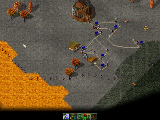 Controls are with the mouse and keyboard. The mouse is used for choosing various actions on-screen, and the keyboard's arrow keys let you move the camera around the world. Left-clicking on an insignificant piece of map brings up a menu for all of the basic in-game options. Right-clicking on something usually gets rid of it.