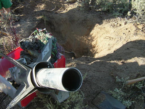 Finally, I spotted a glint of metal in the middle of a scrub brush. About a foot of rocket was sticking out of the ground. If we didn't have the GPS coordinates, it would have been impossible to find.