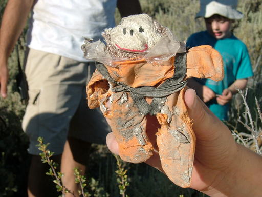 PSAS members showed up and we began to dig the rocket out. Our 12-foot rocket had been compressed into a three-foot piece of twisted metal. The electronics were dust and bits of broken silicon. Amazingly, Baker, our sock monkey survived. He was a little squished, and his helmet was ripped, but he would fly another day.