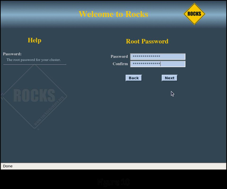 On the next two screens (Figures 10 and 11), enter the root password and configure the time zone and NTP server for the head node.