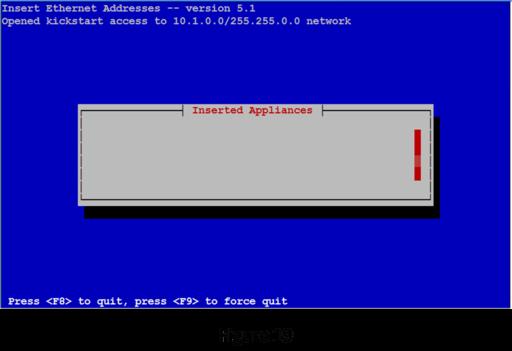 Now it's time to boot the first compute node. If you have wiped the disk, most systems will start a PXE boot from the network as a default action. If you have a KVM switch and can watch the console on the compute node, you should see the PXE boot begin. When the compute node asks for an address for eth0, you will see the MAC address entered in the Inserted Appliances list on the head node (Figure 20).