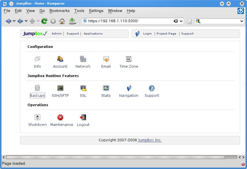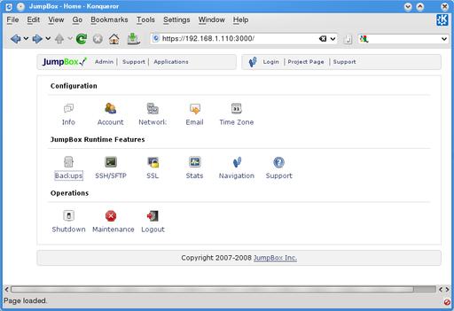 One link will take you to a page where you can finish configuring your machine—usually a minor task as almost everything else is done for you in the virtual appliance. There also will be links to access the application's page and its administration console. The JumpBox administration page gives you access to basic machine operations, such as performing a shutdown or running a backup so you can recover the machine state should disaster strike (Figure 11).