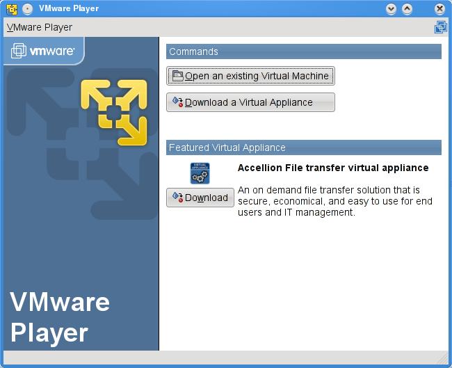Figure 3. The VMware Player lets you play a virtual appliance like you would play a movie—a movie you can interact with no less.