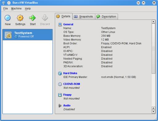 I am currently running OpenSUSE on this notebook, but I have several virtual machines installed as well. In a few seconds, I can start a virtual machine running Mandriva, Fedora, Puppy Linux, Kubuntu, CentOS and others. I do this regularly to test and run different Linux distributions. Those distributions each reside inside a disk image on my system. When the virtual machine is shut down, those distributions and their machines are just big files. That's the idea behind running enterprise software in a virtual appliance and where we start exploring.