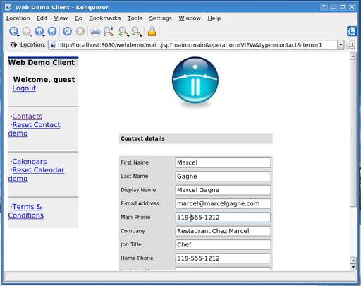 Funambol also comes with a simple Web app to test the contact as well as calendar creation and update before you turn it over to your mobile device. Point your browser to http://localhost:8080/funambol to bring up the demo page. You won't be able to do a great deal at this point, other than read the terms and conditions and test a very limited Web client. That demonstration will allow you to log in as guest with a password of guest and create contacts (Figure 2) or a calendar entry. Once you have done so, update a record or two, and make sure the changes are being saved.