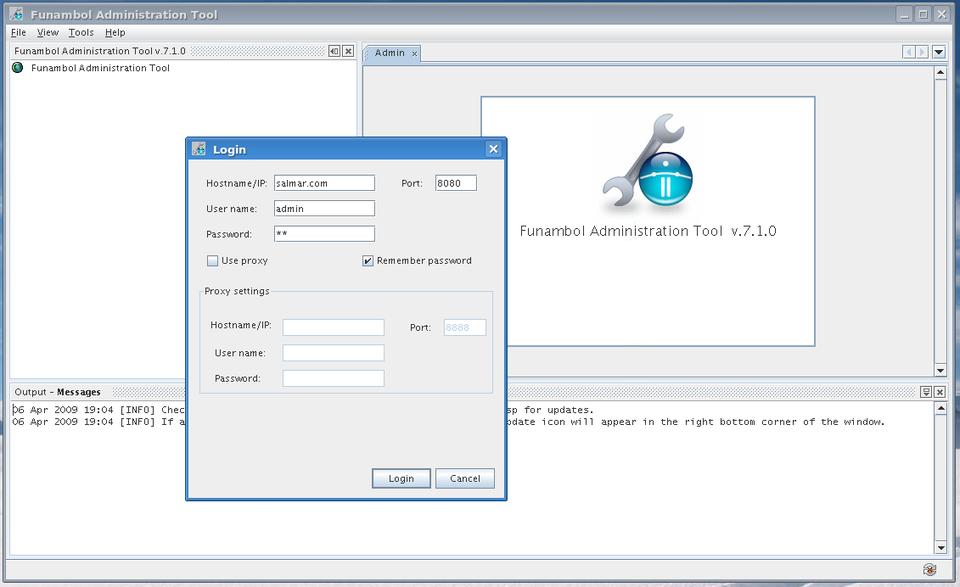 A couple seconds later, you'll see the Funambol administration tool appear (Figure 3). To use the administration tool, you first need to log in. If you don't see the login window up front, click File on the menu bar, and select Login. By default, the admin password, sa, already is set (you always can change it later), but for now, simply click Login.