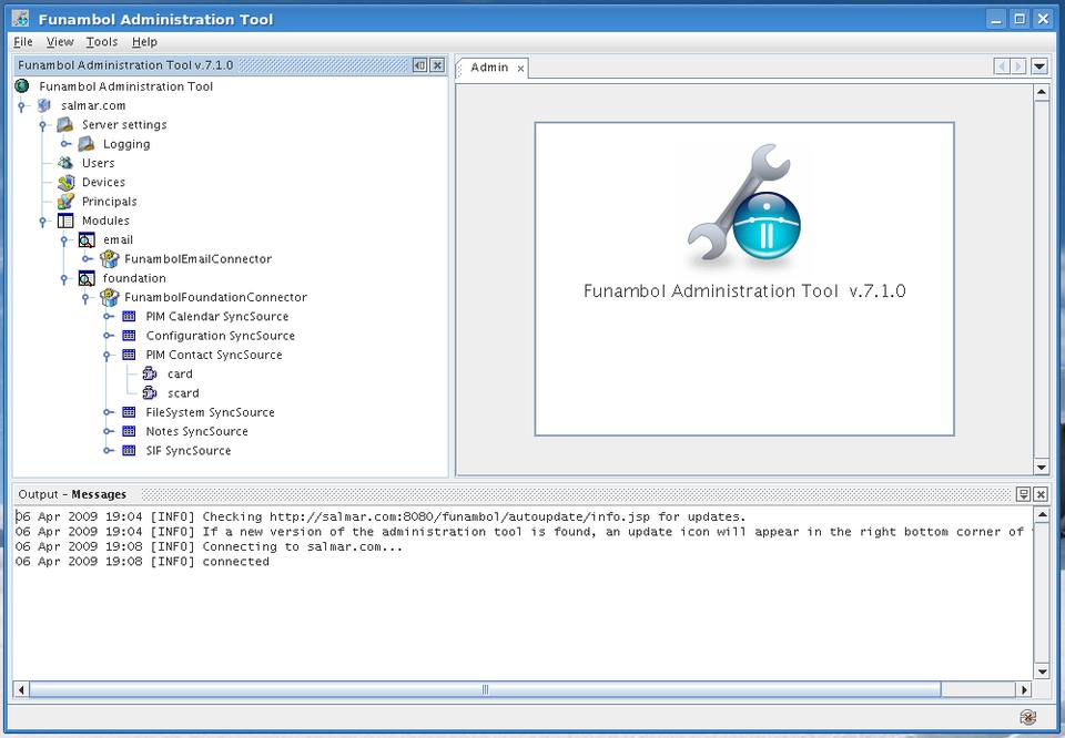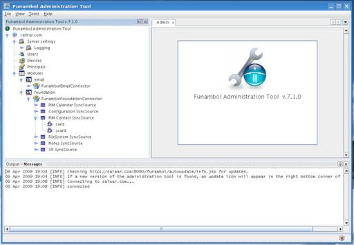 Now that you know it works, you still can't do a great deal with Funambol in this form. In order to do more interesting things, you need to do a little system configuration. On the server side, there is a graphical administration tool. You can start it from the command line like this: