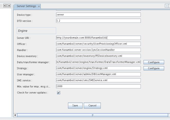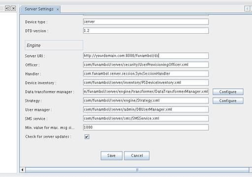 Figure 6. As a final first step, you need to configure the URI to the Funambol service on your server.